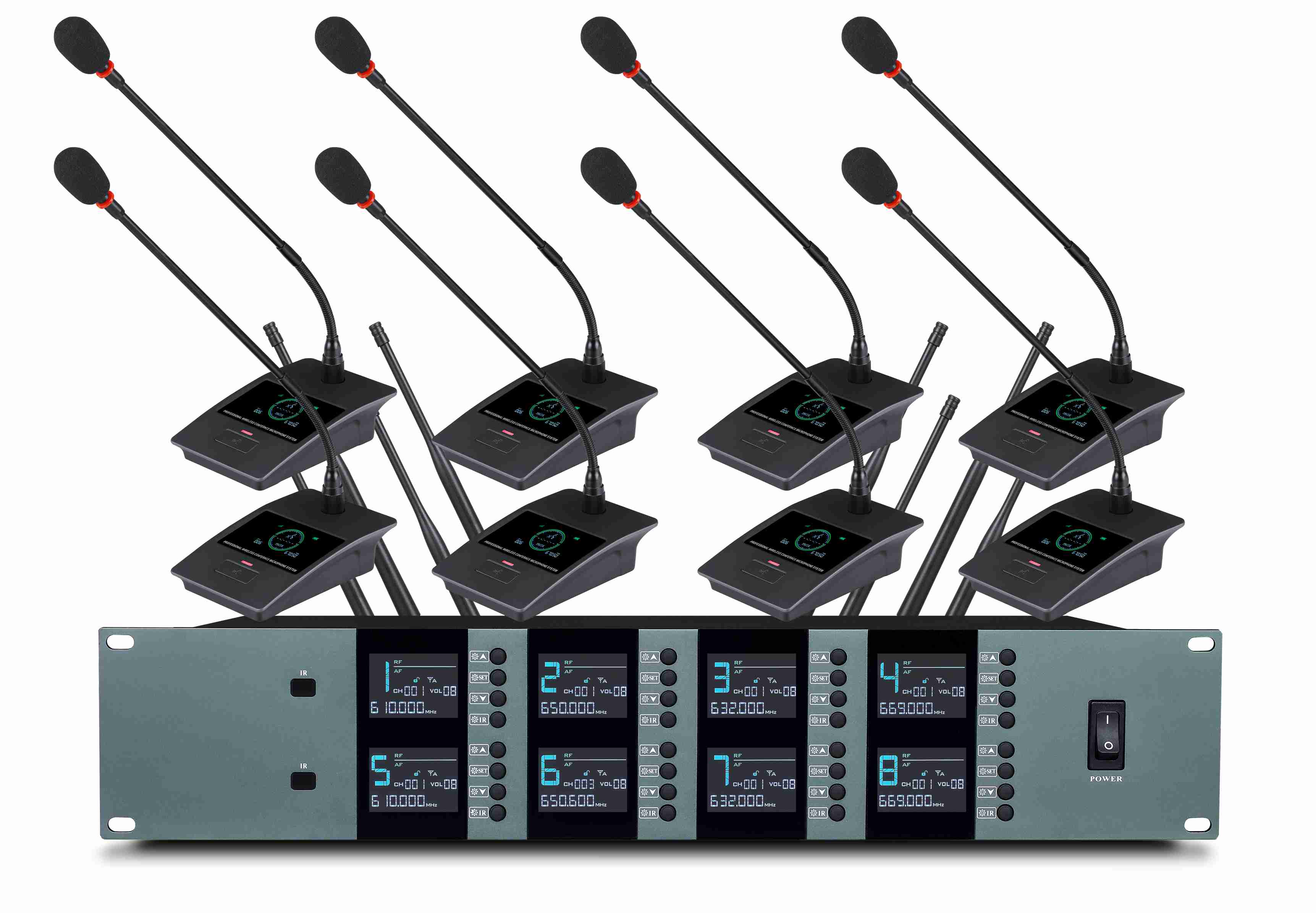 6.具有一键自动搜索干净频点功能、一键锁定按键功能 ,红外対频功能,一键静音/开启功能,发言计时显示
