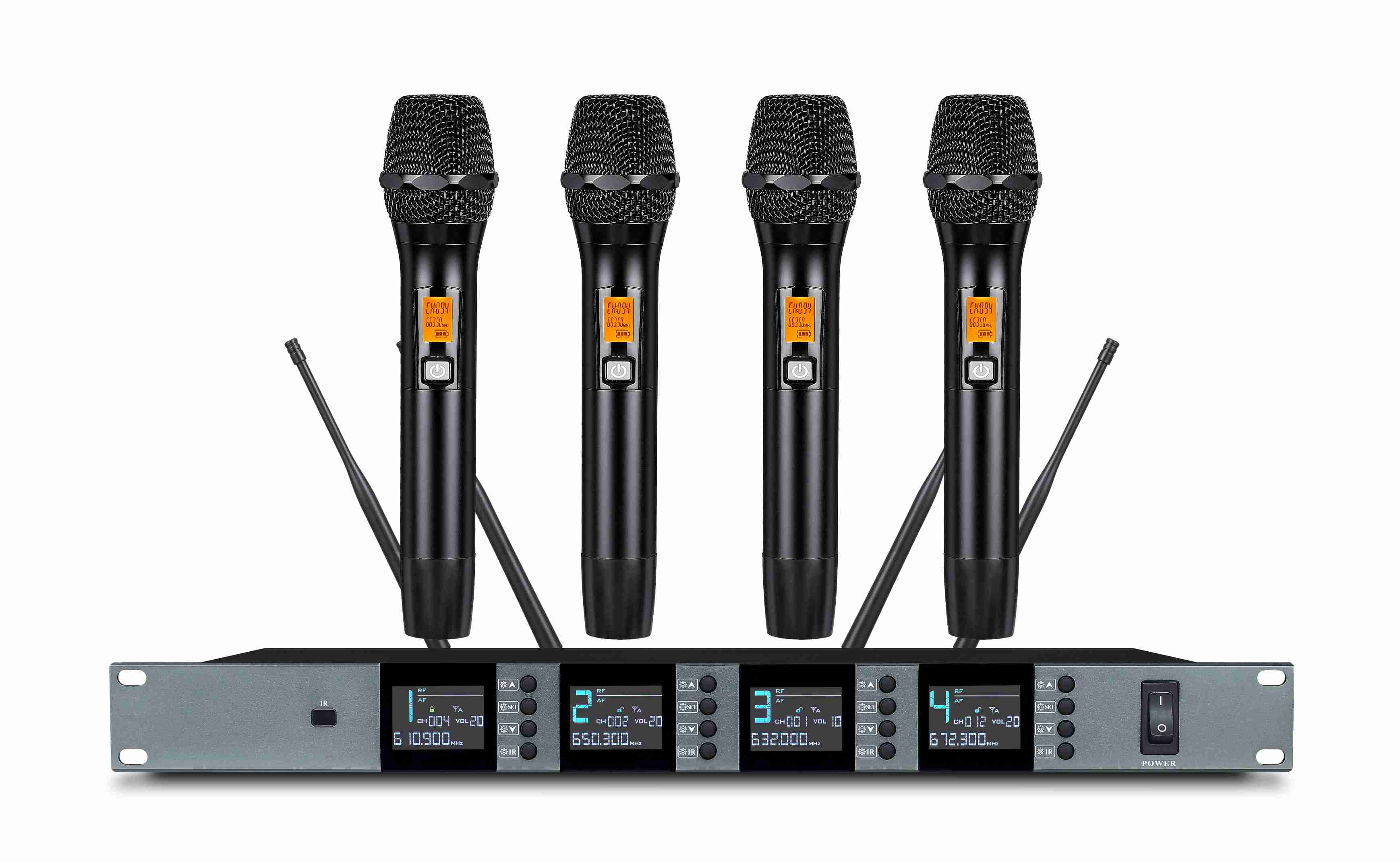 7.采用20级电子音量控制,简约精准,400组可选频点,话筒选配通用